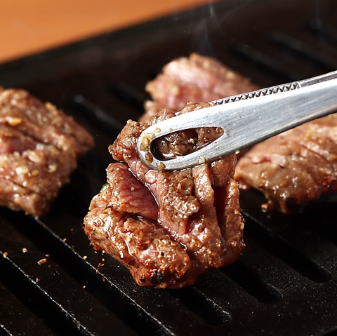 すき焼きのように自家製の割下をつけた薄切り極上肉を鉄板で炙り、卵を絡めて食べる♪幅広い世代に人気のメニュー!ハラミなどを残った卵に絡めて食べても絶品です♪(ハラミ税込1180円)ぜひご賞味くださいませ★