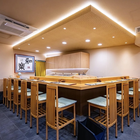 カウンター席では板前さんとの会話を楽しみながら四季折々のお料理をお楽しみいただけます。当日1番のおすすめやペアリングの日本酒を是非お尋ねください。贅沢熟成江戸前寿司をお楽しみいただけます。