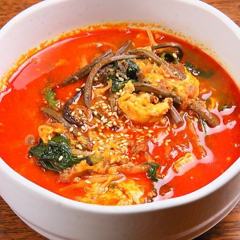 牛骨を5日間煮込み、旨みを最大限に引き出したコムタンスープに、飴色まで炒めた玉ねぎ、コチュジャンや唐辛子を加え、ピリ辛に仕上げたスープです♪旨みと辛みで、やみつきになること間違いなしです!