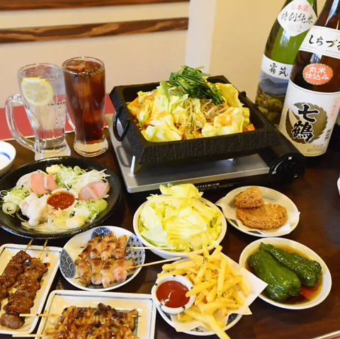 やきとんパンチの宴会コースは2時間飲み放題込みで2980円もしくは3時間飲み放題込みで3480円と超お得!当店名物のやきとん4種はもちろん、パンチのスタミナ牛もつ鍋・肉刺しなど全6品+串4本とボリューム満点!2階フロアの貸切も可能で最大40名様までご利用いただけます。