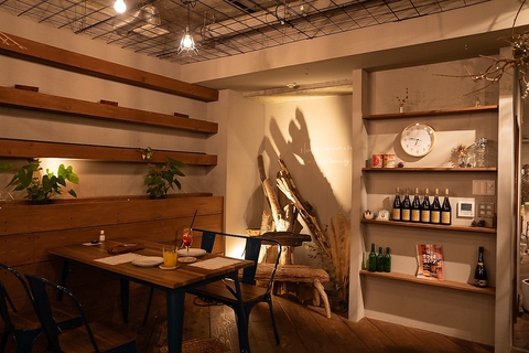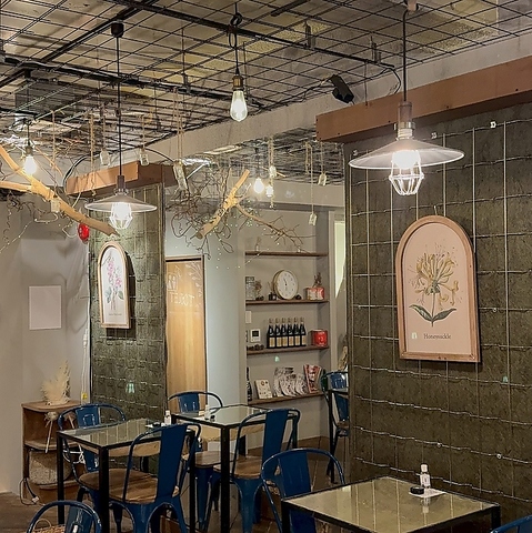 グリーンがあふれるお洒落な店内は女子会やママ会など、ちょっとした集まりにもぴったり。のんびりと時が流れる、穏やかな空間に心も身体もリラックスして思わずトークも盛り上がっちゃうかも!?もちろんご家族でのご利用や、お子様連れもOK。長椅子に親子でゆっくり座ってお食事いただけます♪
