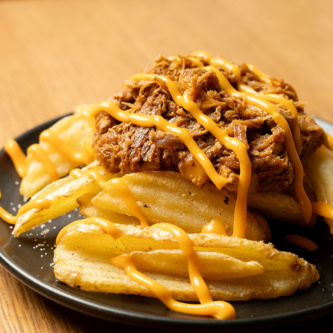 サクサクとホクホクをどちらも楽しめるフライドポテトの上に、プルドポークがのったボリューム満点な一品。上から濃厚チェダーチーズソースがかかっており、濃厚な味を楽しむことができます♪訪れたお客さんがマストで注文する看板メニューです!