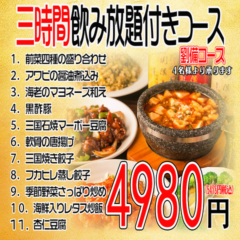 盛り上がると2時間は短いというグループ様に3時間飲み放題付コースもご用意しています!各種ご宴会に。