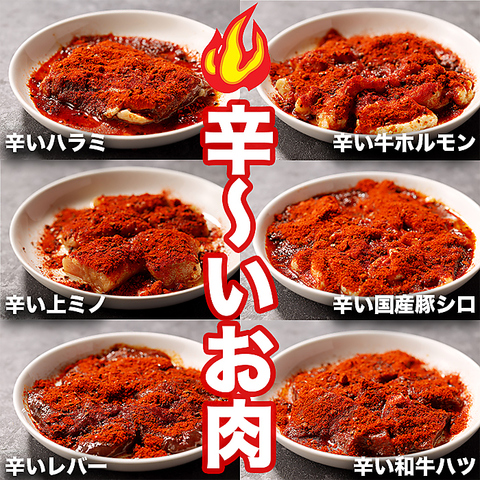 辛いお肉は夏にピッタリ!暑い日に食べたくなる辛いお肉は全部で6種類。名物のハラミ・牛ホルモン・上ミノ・国産豚シロ・牛レバ・和牛ハツをご用意。一度食べたら止まらないヤミツキの辛いお肉をぜひ!〆には万場自慢の辛いラーメンを食べて暑い夏を乗り切ろう!