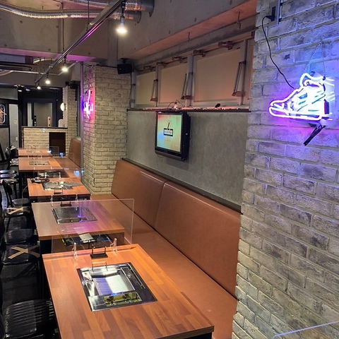 【フロアレイアウト】当日ふらっと少人数のご宴会から、大人数の貸切宴会まで幅広くご対応致します。予算・人数は応相談◎無煙ロースター全席完備など、設備充実なところが嬉しい♪店内液晶TV設置!!女子会・送別会・歓迎会などに♪※写真はイメージです。