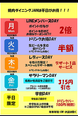 お店に行く前に焼肉ダイニング JANのクーポン情報をチェック!