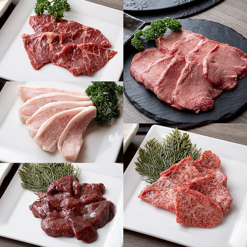 上タン塩、カルビ、ハラミ、豚トロ塩、ごはん、サラダ、ナムル、デザートに飲み放題がついたコースです。