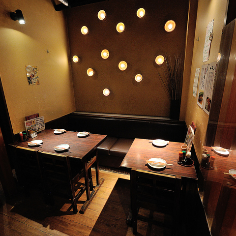【半個室の人気席あります!】予約必須の半個室席!6~8名様にはぴったりの空間になっております!飲み放題コースでお得にお食事をお楽しみ頂けます!テーブル席も5席ございます!仕事帰りの一杯からご宴会まで、お得なクーポンと合わせてご利用くださいませ!谷町周辺での飲み会はお任せ!