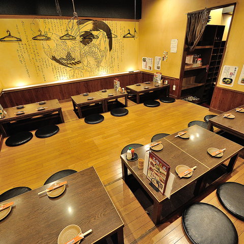 宴会にオススメ!足元ゆったり掘りごたつ席は広々でゆったりご宴会に◎お得な飲み放題コースも多数♪