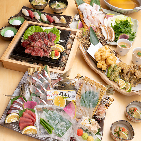 《【月~木曜限定】豊後旬選食材コース / 名物カワハギ・冠地どりの大分食べ尽くしコース / 名物泳ぎカワハギ・関あじ・・おおいた和牛のお取り寄せコース / かぼすとらフグ・関あじ・おおいた和牛の豪華宴会コース…お料理3,000円から8,000円までのコースをご用意!