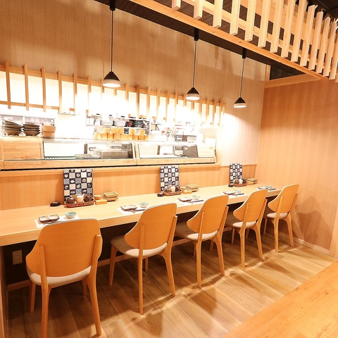 カウンター席もゆったりと落ち着ける造りとなっております。また、厨房とカウンター席は完全に仕切られているため、周りを気にせずお過ごしいただけます。お1人様でも安心してご利用いただけますので、お仕事帰りやお買物帰りなど、どうぞお気軽にお立ち寄りください。