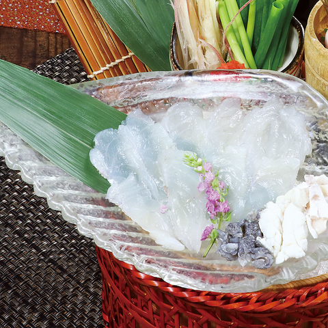 大分の地魚とザ・おおいたブランドの大分づくしをお楽しみ下さい。いつでも新鮮なカワハギを味わえるよう、店頭のいけすに準備しております。※カワハギの入荷状況によっては他の魚種、ウマヅラハギでお出しする場合もございます。また夏の期間、肝が少なかったり、お出しできない場合がございます。あらかじめご了承下さい。