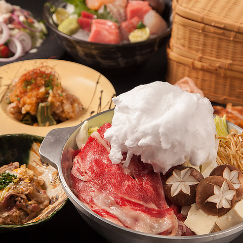 季節によって異なる豊富なコースをお愉しみいただけます!クーポン利用で全コース時間120分飲み放題付♪飛騨牛と、愛知を代表するみかわもち豚。コク・旨味は間違いなし。名古屋名物の名古屋飯も楽しめる!!贅沢すぎるすき焼き・しゃぶしゃぶをぜひ御賞味ください!!各種コースご用意ございます