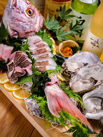 確かな目利きで選び抜かれた旬の鮮魚を贅沢に盛り合わせ。2名様~注文OK。特別な夜に彩りを添える逸品。2日前までのご予約必須!その日の仕入れ状況に応じて内容が変わる、まさに“運命の一皿”。日本酒や焼酎との相性も抜群。ご希望のお客様には半個室や個室のご案内も可能です。接待にも◎