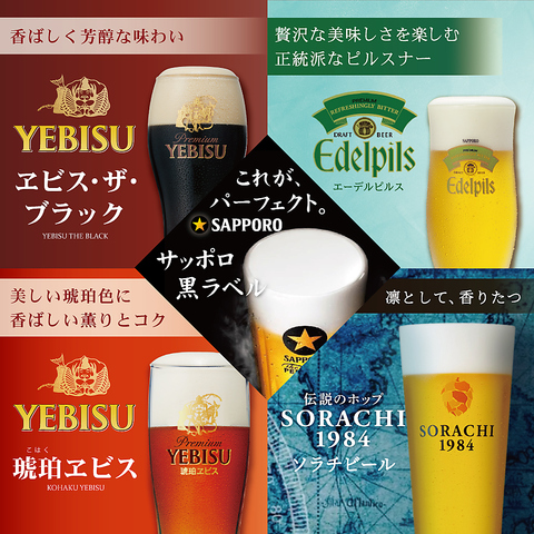 | プレミアム+ビール9種類&5大陸ウィスキー +300円(税込) | 各種 |