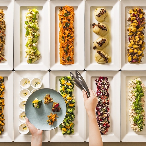 【ライブキッチンで仕上げるバラエティー豊かな料理】和洋中の料理&デザートと“美味しい野菜”を少しずつ、たくさん!
