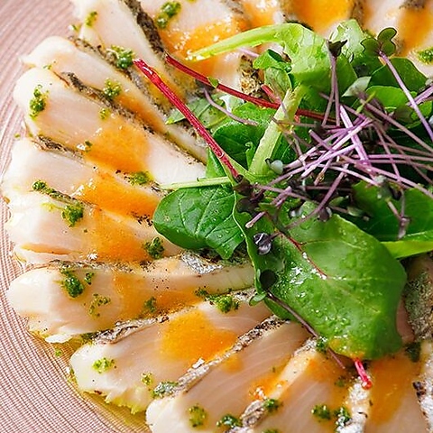 【コース料理例】歓送迎会に華やかさを添える鰆のカルパッチョ 春の香草ドレッシング!新しい門出を祝おう◎
