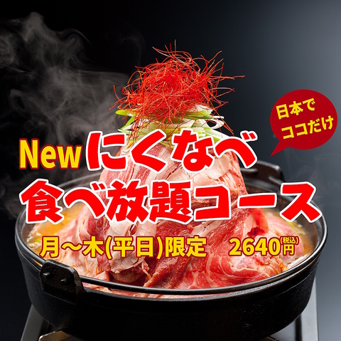 飲み放題付き国産牛をぜいたくに使用した絶品にくなべ♪ 焼肉よりも好きと言う方も多数いらっしゃいます。