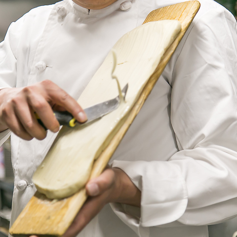 店頭で毎日手造りしている自家製刀削麺は実際に職人が作っているところを間近にご覧いただくことができます。種類も約10種類ございますのでお好みのお味をお選びいただけます。イチオシは四川火鍋刀削麺1,188円(税込)です。打ち立ての麺はお腹いっぱいでもツルッと食べることができますよ!