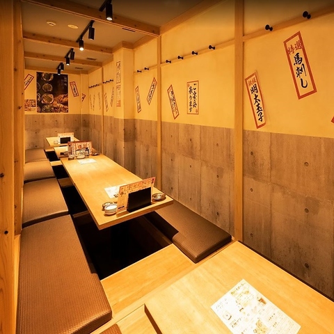 【小~中団体の宴会向き席】最大20名様までご利用可能。気の合う友人・会社仲間との集まりや宴会などにぜひ!ゆっくり寛げる掘りごたつ席で美味しい料理をお愉しみ下さい。