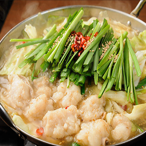 人気No.1メニューの『もつ鍋』は生ビールとも相性抜群◎5時間かけて煮込む秘伝の出汁に、牛もつの旨みやキャベツの甘みが溶け込み、最後の一滴まで美味しく召し上がっていただけます!ぶるぶるの牛もつの食感も堪りません。しょうゆ・白味噌をご用意しています。〆にラーメン、雑炊、ちゃんぽんをぜひお試しください。