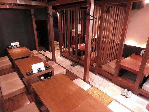 店内奥に掘りごたつ席を完備★竹がお席を囲っているので、半個室のような雰囲気をお楽しみいただけます♪掘りごたつだから足を延ばしてゆったりとお食事をお楽しみいただけます♪会社の宴会から接待、お友達との集まりやプライベートな記念日のお祝いなどにもぜひご利用ください★