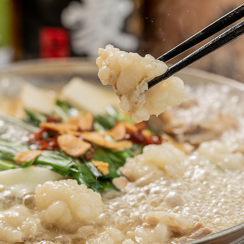 ぷりぷりの牛もつはコラーゲンたっぷりでとってもヘルシーです。※お鍋は2人前からご注文を承ります。