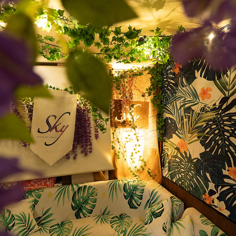 SKYならではの非日常空間で楽しいご宴会をお楽しみくださいませ!少人数から大人数まで各種ご宴会や飲み会などでぜひご利用くださいませ♪個室・ソファー席もございます☆少人数~貸切最大70名までOK☆各種設備(スクリーン・TV・音響設備など)も完備!