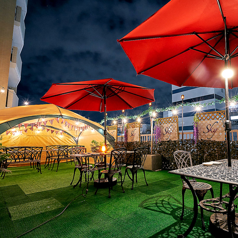 屋上テラスでBBQ&グランピング!160種飲み放題付コースをご用意!早めのご予約を!