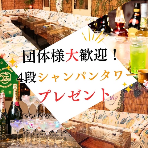 SKYならではの非日常空間で楽しいご宴会をお楽しみくださいませ!少人数から大人数まで各種ご宴会や飲み会などでぜひご利用くださいませ♪個室・ソファー席もございます☆少人数~貸切最大70名までOK☆各種設備(スクリーン・TV・音響設備など)も完備!