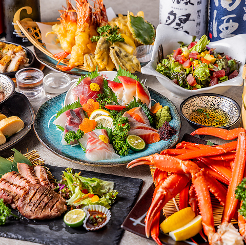 旨味凝縮のズワイガニや伊勢エビのお刺身などを堪能できるコースあり◎ぜひ宴会や飲み会にご利用ください!