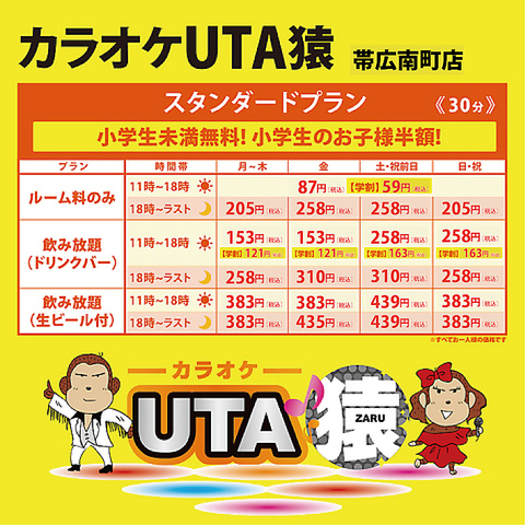 すぐ横にある山の猿で2Hご宴会+UTA猿でカラオケ!1次会と2次会がセットになったお得なプランは飲み放題付!