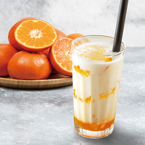 期間限定!当店オリジナルレシピでつくるヘルシーな乳酸菌飲料に、実がごろごろ入った国産みかんシロップを加えました。