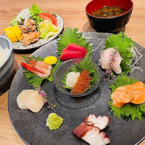 鮮魚のみを厳選し、新鮮さを追求。口に入れる瞬間に広がる濃厚な旨味と、ふわっと広がる口溶けの良さに感動すること間違いなし!玉子焼き、サラダ、ご飯、汁物、香の物と共に、至福のひとときをお過ごしいただけます♪