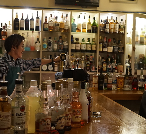 ビルの3階部分/2つの個室の間にカウンター席を完備◎カジュアルな雰囲気のバーはウィスキーや名物のクラフトジンがオススメ◎アルコールの弱い方には紅茶やブラッドオレンジの優しくて飲みやすいお酒が好評☆実は夜カフェとして利用するお客様も多く、店主がJR奈良駅付近の【バンテン珈琲】で焙煎した豆を日替わりで用意