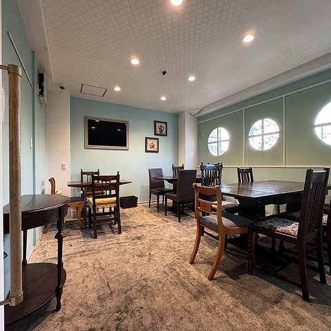 4名以上で広々とした1フロア貸切り利用/完全個室【Room Dolce】ティファニーブルーの可愛い壁色とアンティークのテーブルや椅子で女性に大人気のお部屋。会社の集まり事や女子会でおしゃべりを楽しみながら食事をゆっくりお楽しみいただけます。こちらのお部屋もカラオケ/映像演出可能で、誕生日会やオフ会にも大好評◎