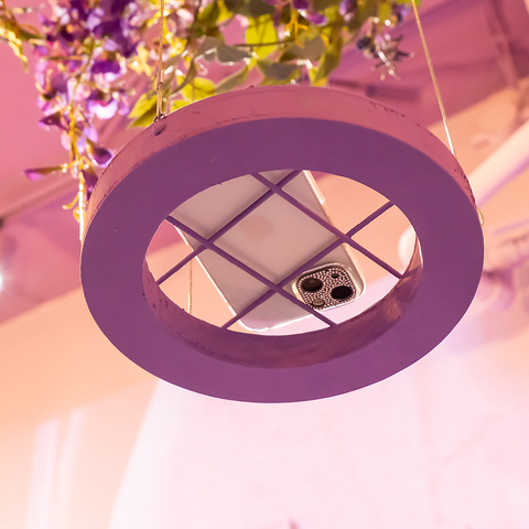 お席上の撮影スポットはスマホを置いて上空からの撮影が可能♪ワンランク上の料理撮影などが楽しめます!女子会やお誕生日会などのサプライズ撮影にも是非ご利用ください!!