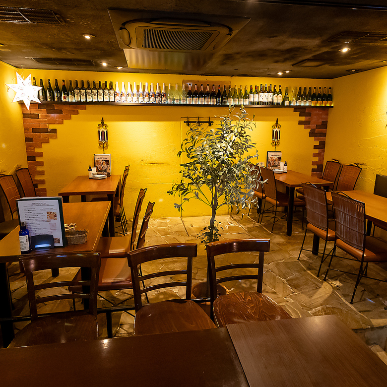 基本的に4名席を中心に 7卓ご用意しています。テーブルは稼働の為アレンジ出来ます。団体でもOK 土壁ランプが時間を忘れさせてくれます。ラテン音楽とクラブ音楽がいりまぎり、楽しく食事も飲みも、飲めない方も気軽に楽しめる空間