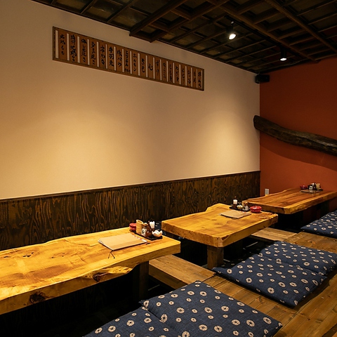 雰囲気がよく、ゆったりとお食事を楽しめる空間づくりを大切にしております。木の温もりを感じる心地よい雰囲気の中で、心からリラックスした時間をお過ごしください。お客様の様々なご利用シーンに合わせて、テーブル、カウンター、個室、掘りごたつのお席をご用意しております。お一人様からご宴会まで大歓迎です♪