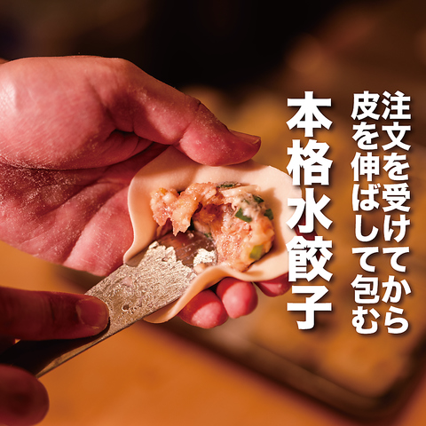 オーダーが入ってから皮を伸ばして餡を包む本場中国スタイルの水餃子はプルプルモチモチ感が桁違い