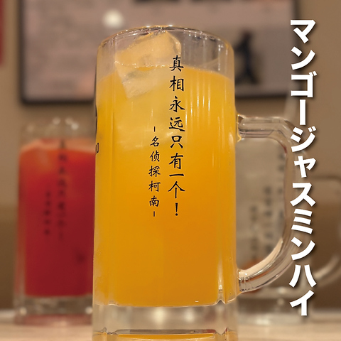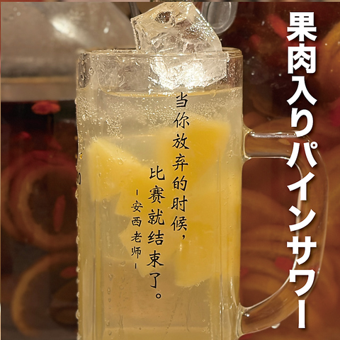 | サワー | レモンサワー/グレープフルーツサワー/パインサワー/みかんサワー/白桃サワー/ざくろサワー/マンゴーサワー/グァバサワー/クランベリーサワー/ウーロンハイ/プーアール茶ハイ/ジャスミンハイ/マンゴージャスミンハイ |