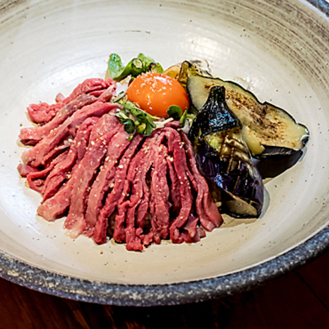 特選黒毛和牛牛本来の旨味を堪能していただけるようにタレはフルーティに仕上げております。濃厚な卵とジュレをあわせてお召し上がりくださいませ。