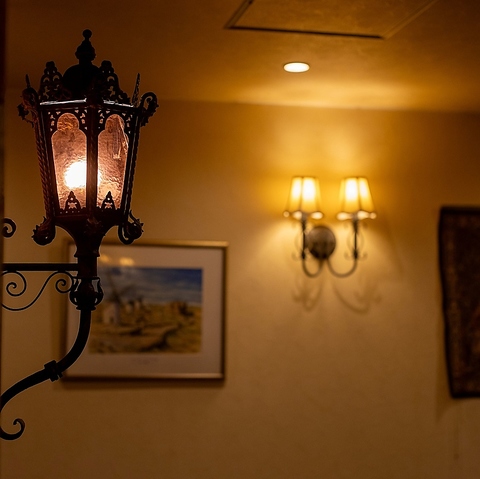 色とりどりのステンドグラスの照明が各所に配置され、優しく店内を灯し日頃の疲れを癒します。ワインはスペインで愛される古き銘柄から新種まで豊富。