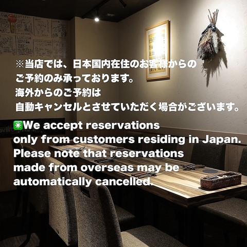 ※当店では、日本国内在住のお客様からのご予約のみ承っております。