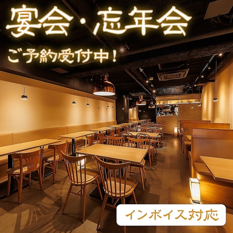 【おしゃれなモダン空間】2名様から50名様の貸切も対応できる様々なタイプのお席をご用意しております◎