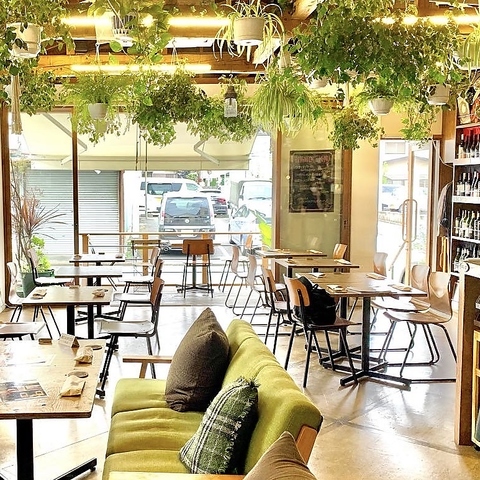 緑溢れる開放感のある平屋造りの店内。テラスからそよぐ風が心地よい♪イギリスの港町にあるカフェのような雰囲気。癒しの空間でおくつろぎ頂けます☆