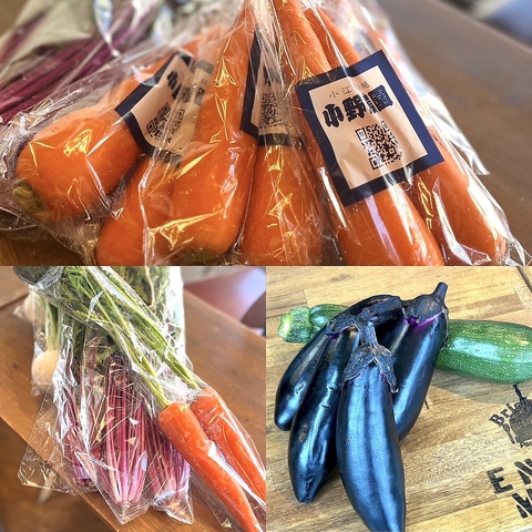 地産地消として川越 小野農園さんの農薬化学肥料をいっさい使用しない有機野菜を前菜やサラダ、付け合わせなどに使用しております。
