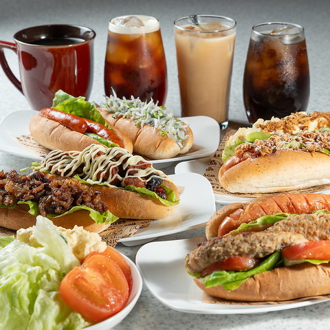 香ばしいパン、あふれる旨み。選べるホットドッグとドリンクで、あなた好みの組み合わせを!ジューシーなソーセージに、こだわりのトッピング。ドリンクと一緒に、満足感たっぷりのひとときを。