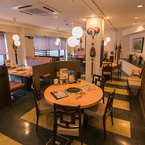 開放感のある店内には、通常のテーブル席だけではなく、BOXタイプのお席まで、合計60席用意しております。様々なお客様の用途に対応できるようレイアウトも自由に設定できますので、会社の宴会やご家族でのお食事など、お気軽にご利用ください。どのお席でもニーズに合わせてゆったりとお食事をお楽しみいただけます。