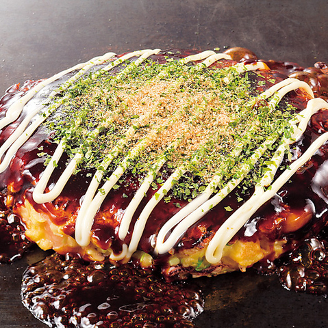 熱々の鉄板で焼き上げるお好み焼き☆デザートメニューもご用意しております。女性の方にもおすすめ★